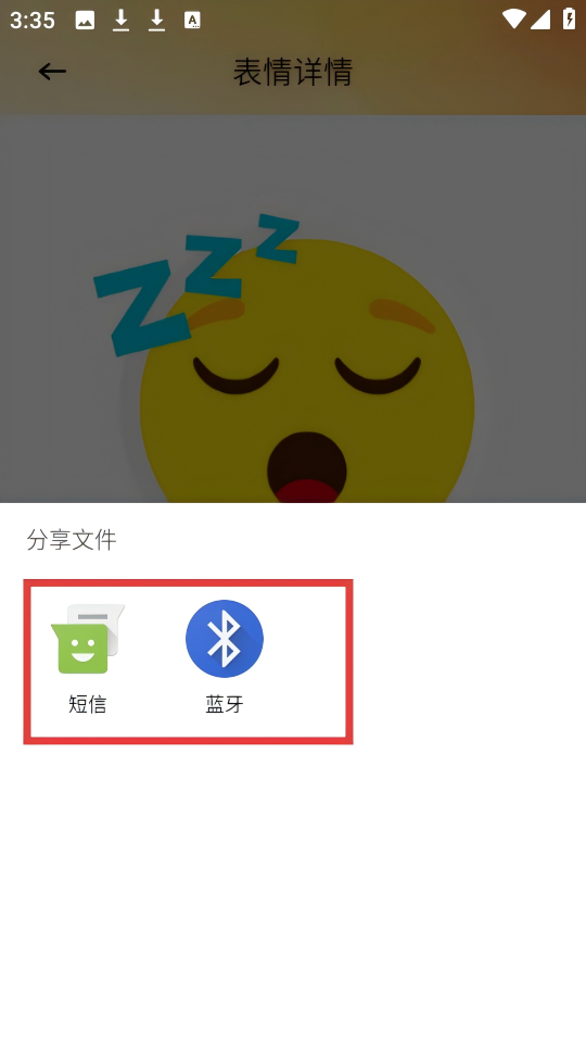 4、在【表情详情】页面,可通过【短信】或【蓝牙】分享表情。