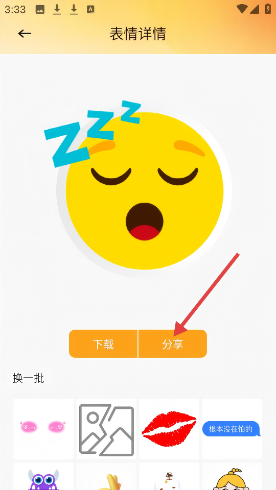 3、进入【表情详情】页面后,点击【分享】按钮可分享该表情。