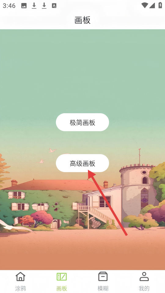 3、在【画板】页面,点击【高级画板】选项,可进入高级画板进行绘图。