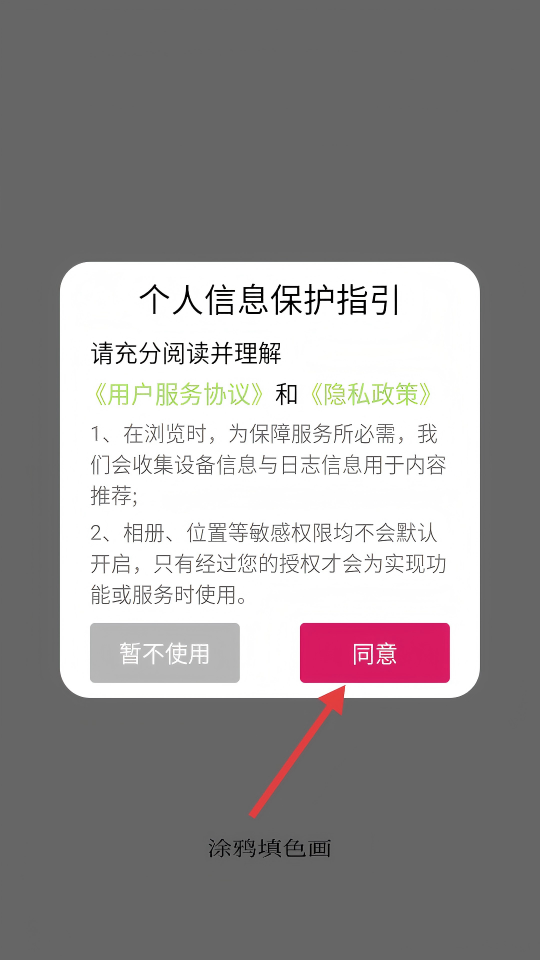 1、在弹出的【个人信息保护指引】窗口中,点击【同意】按钮以继续使用应用。