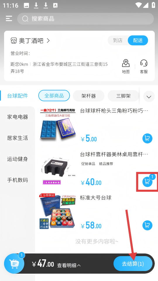 2、搭建台球专属商城,涵盖球杆、球桌、配件等全品类商品,支持在线浏览筛选,找到目标商品后可直接下单支付。