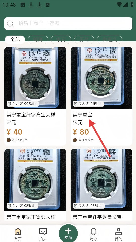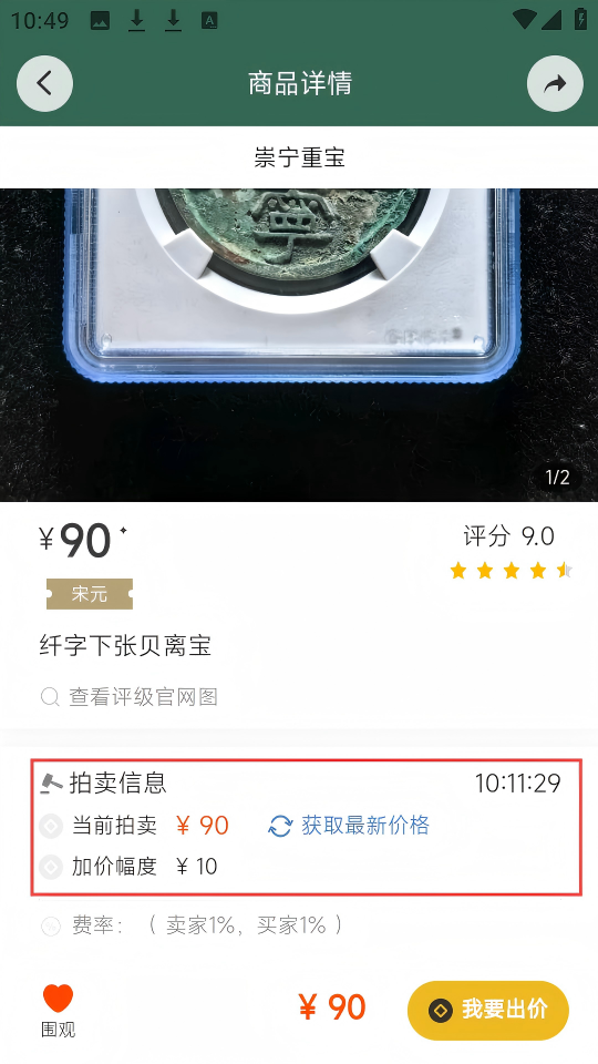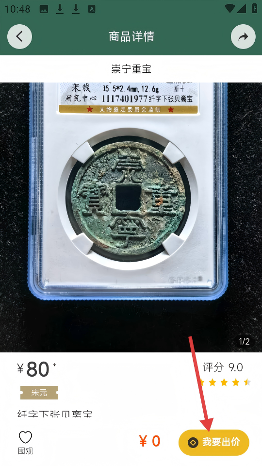 4、展示详细的古钱币商品信息,包括价格金额等关键内容,用户可全面了解藏品详情,为选购决策提供参考。