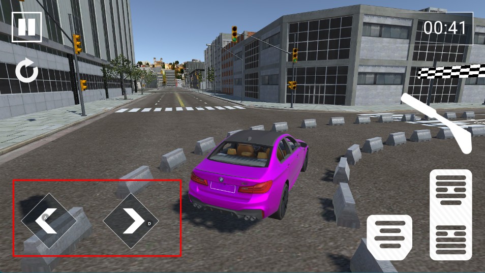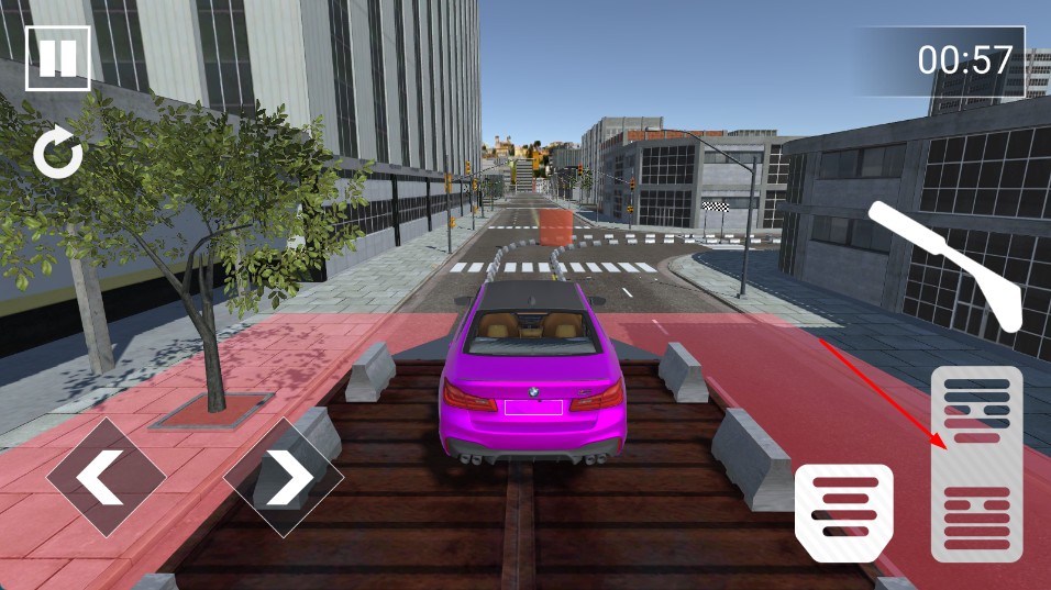 2、行驶中,点击右侧油门按键,可让车辆加速,在城市赛道上行驶。