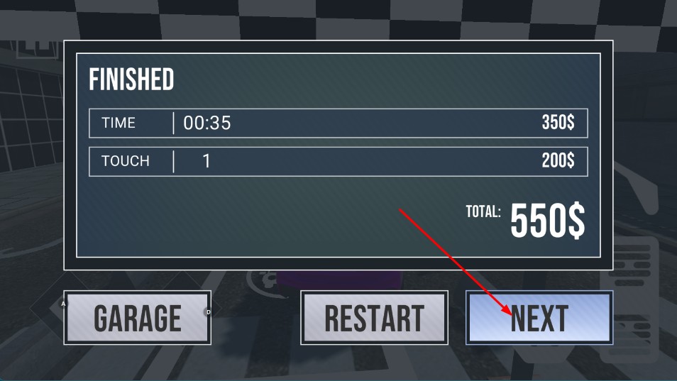 4、完成关卡后,点击【NEXT】按钮,可进入下一个赛车关卡,继续游戏。
