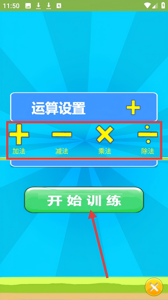 3、在【运算设置】中选择好运算类型后,点击【开始训练】按钮开始练习。
