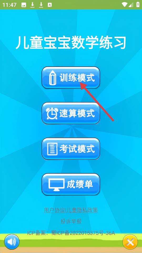 1、进入儿童宝宝数学练习后,点击【训练模式】按钮。