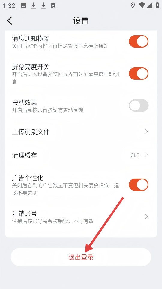 3、在【设置】页面,点击底部的【退出登录】按钮,会弹出退出确认提示框。