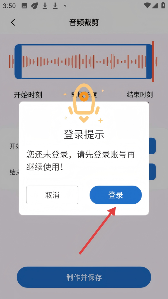 4、弹出【登录提示】弹窗时,点击【登录】按钮,登录账号后可继续操作。