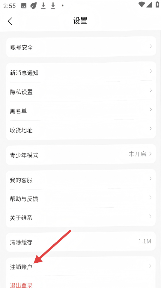3、在【设置】页面,点击【注销账户】选项,可进入注销账号流程。