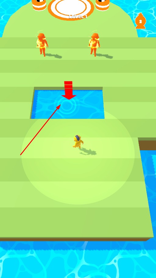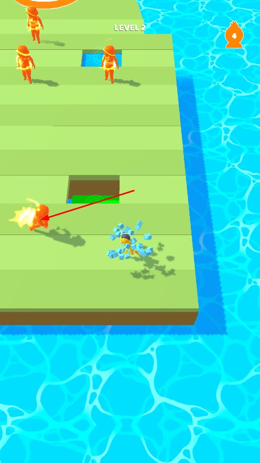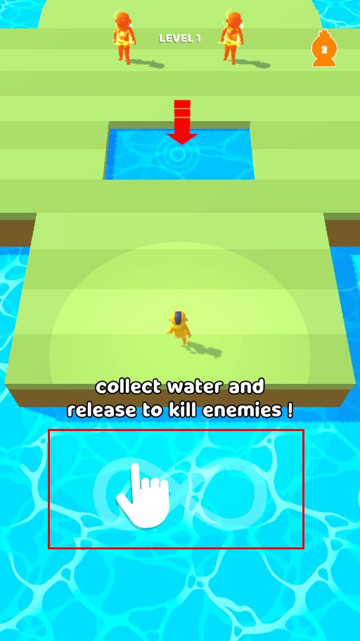 3、释放收集的水,攻击橙色火焰敌人,使其被击碎,推进关卡。