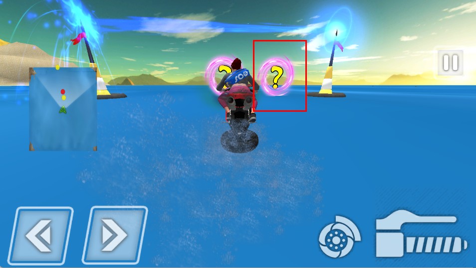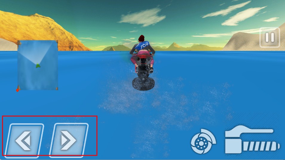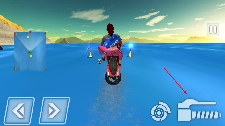 2、在水面行驶时,点击右侧加速按钮,提升摩托速度,超越对手。