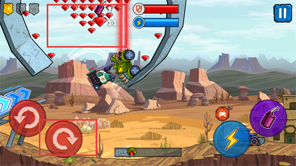 3、遇到大量钻石资源时,调整战车行驶路线,尽可能收集更多钻石,同时利用方向控制按钮躲避障碍物和敌人攻击。