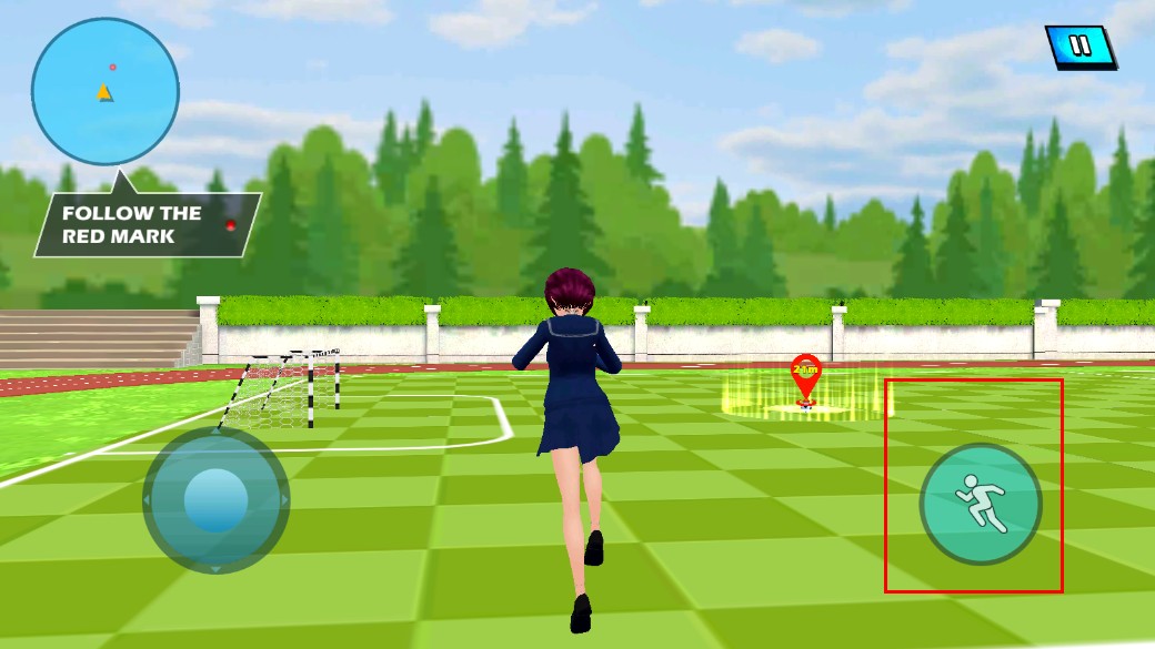 4、点击右侧跑步按钮,让角色快速移动,抵达足球等运动场地,参与项目。