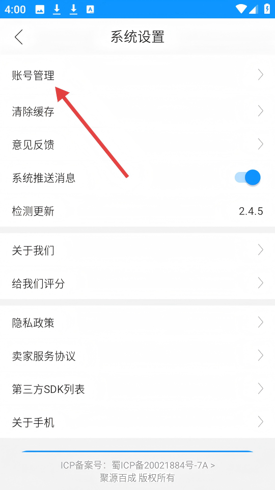 3、在【系统设置】页面,可点击【账号管理】进行账号相关操作。