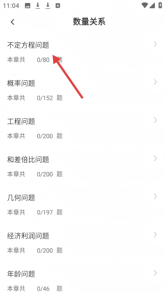 3、进入【章节练习】的【数量关系】模块,可选择【不定方程问题】题型进行练习。