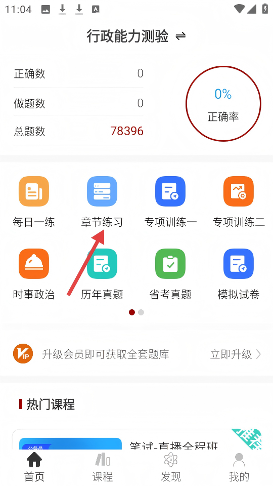 1、在【行政能力测验】界面,点击【章节练习】按钮,可进入各章节练习模块。