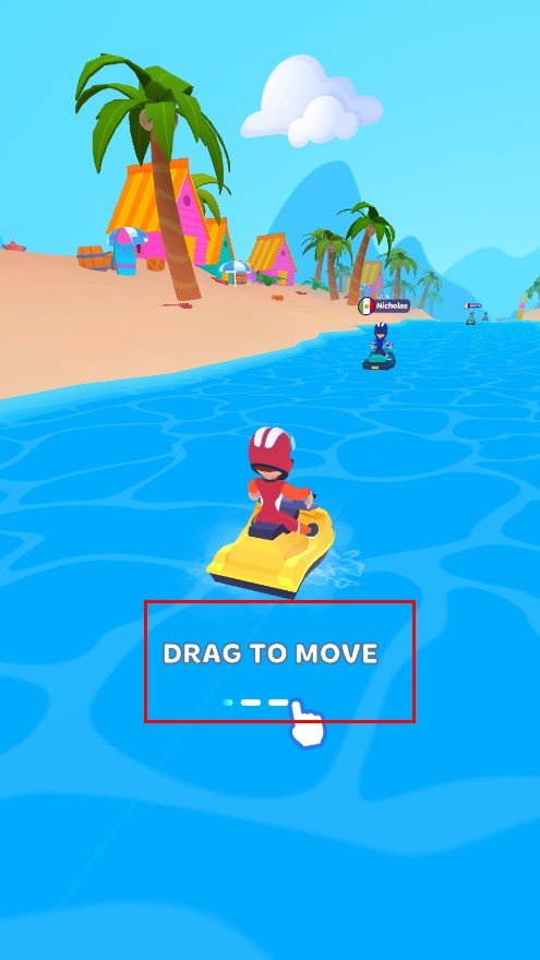 1、进入游戏后,拖动屏幕,控制摩托艇移动方向。