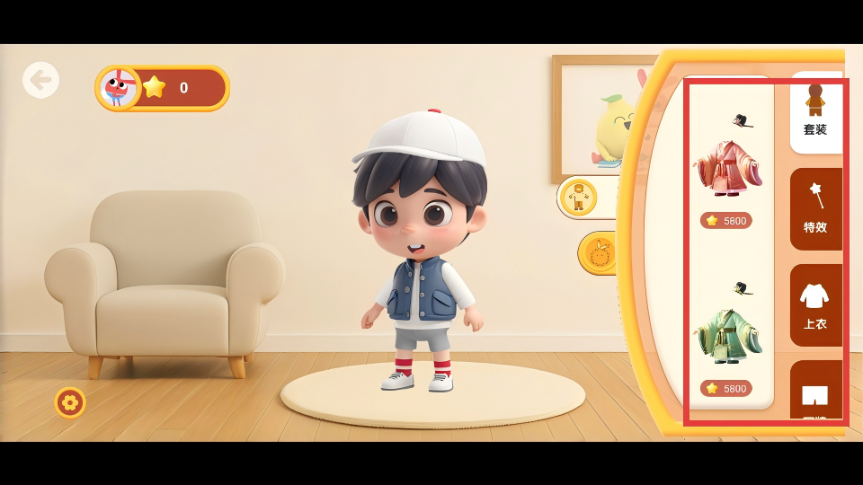 4、在角色装扮界面,可通过右侧【套装】等分类,选择套装为角色装扮。