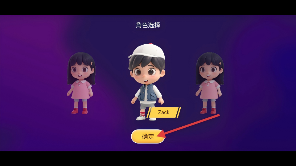 2、在角色选择界面,选定角色(如Zack)后,点击【确定】按钮。