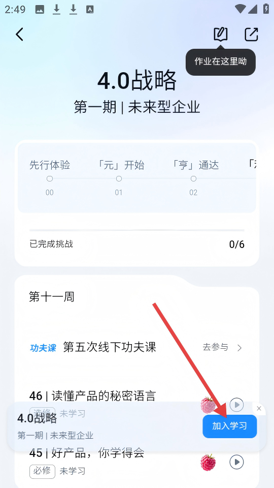 2、在【4.0战略第一期|未来型企业】页面,点击【加入学习】按钮。