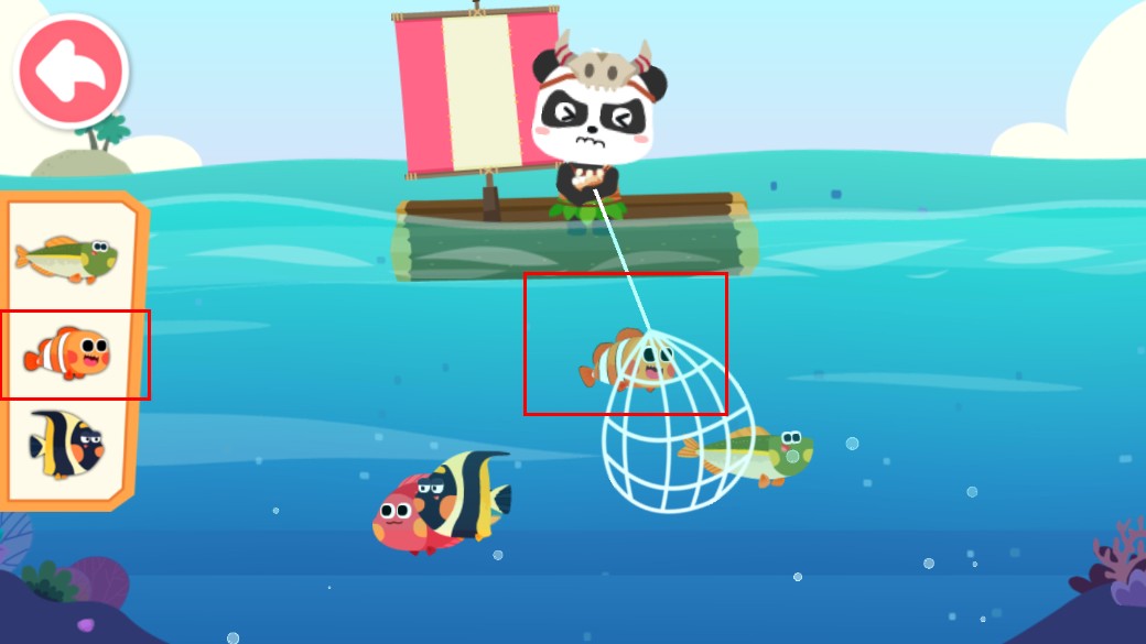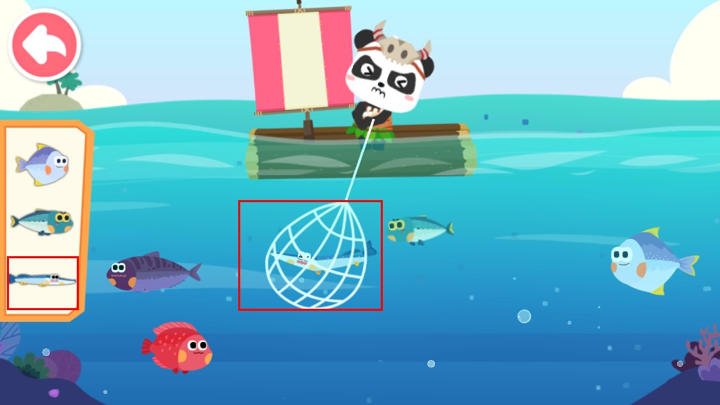 2、在捕鱼环节,可选择左侧对应鱼类,用渔网捕捉水里的目标鱼。