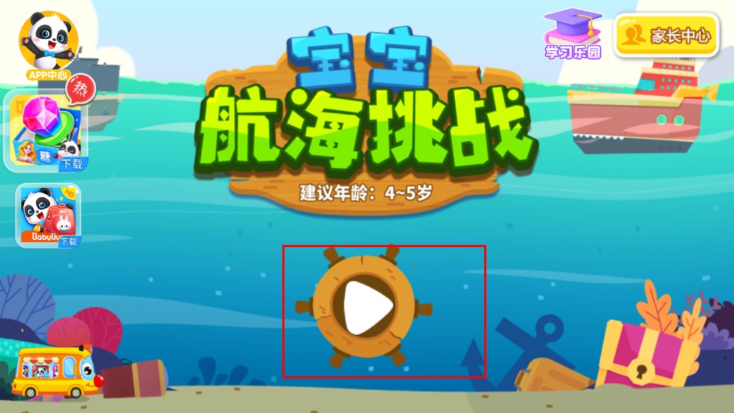 1、点击船舵样式的【开始】按钮,进入“宝宝航海挑战”,开启航海之旅。