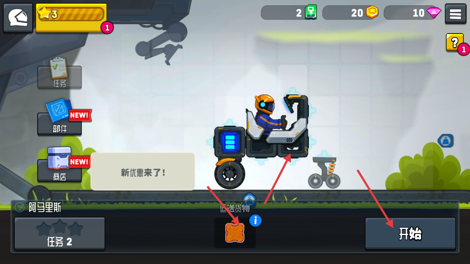 1、将【部件】装置车上,点击【开始】按钮进入任务。