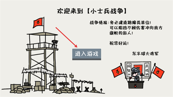 1、点击“进入游戏”开启关卡,核心任务是建造路障类单位(阻挡敌人且不造成伤害),同时部署兵种争夺敌方旗帜。