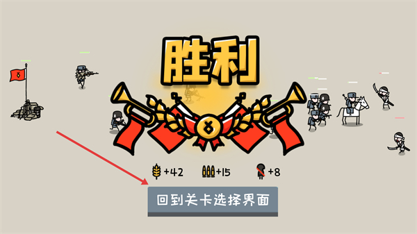 4、通关后获得42资源、15装备、8道具等奖励,点击“回到关卡选择界面”可挑战下一关。