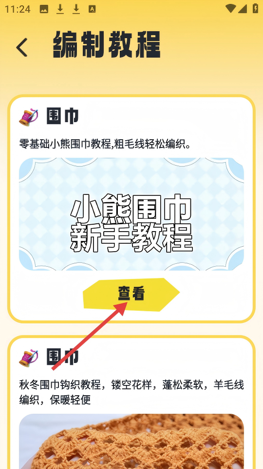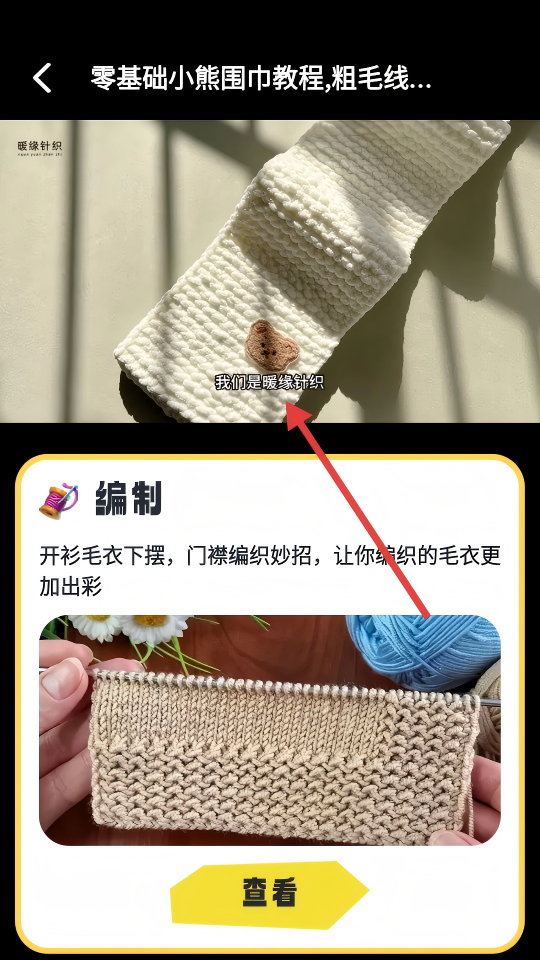 3、在【编制教程】中,找到【零基础小熊围巾教程,粗毛线轻松编织。】,点击下方【查看】。