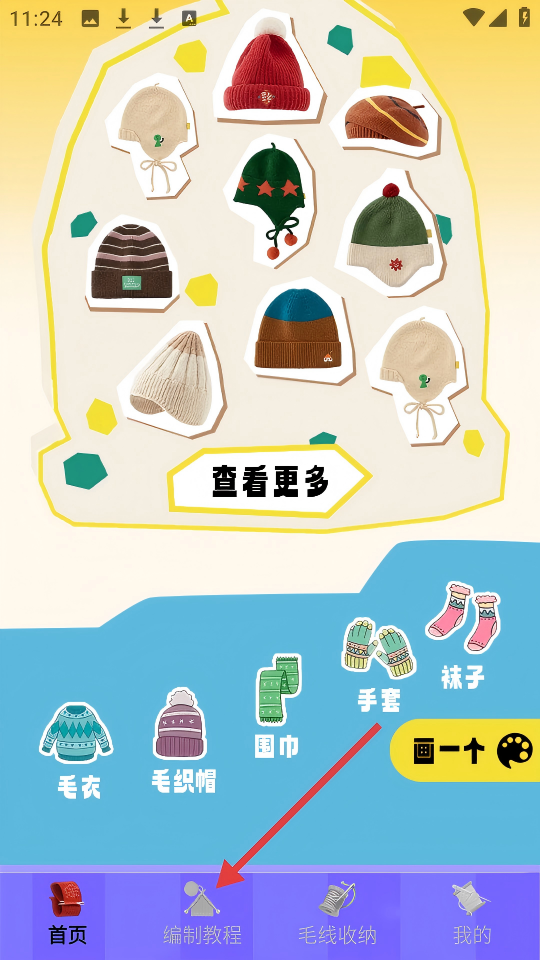 1、点击底部【编制教程】选项,可查看更多针织品相关内容。