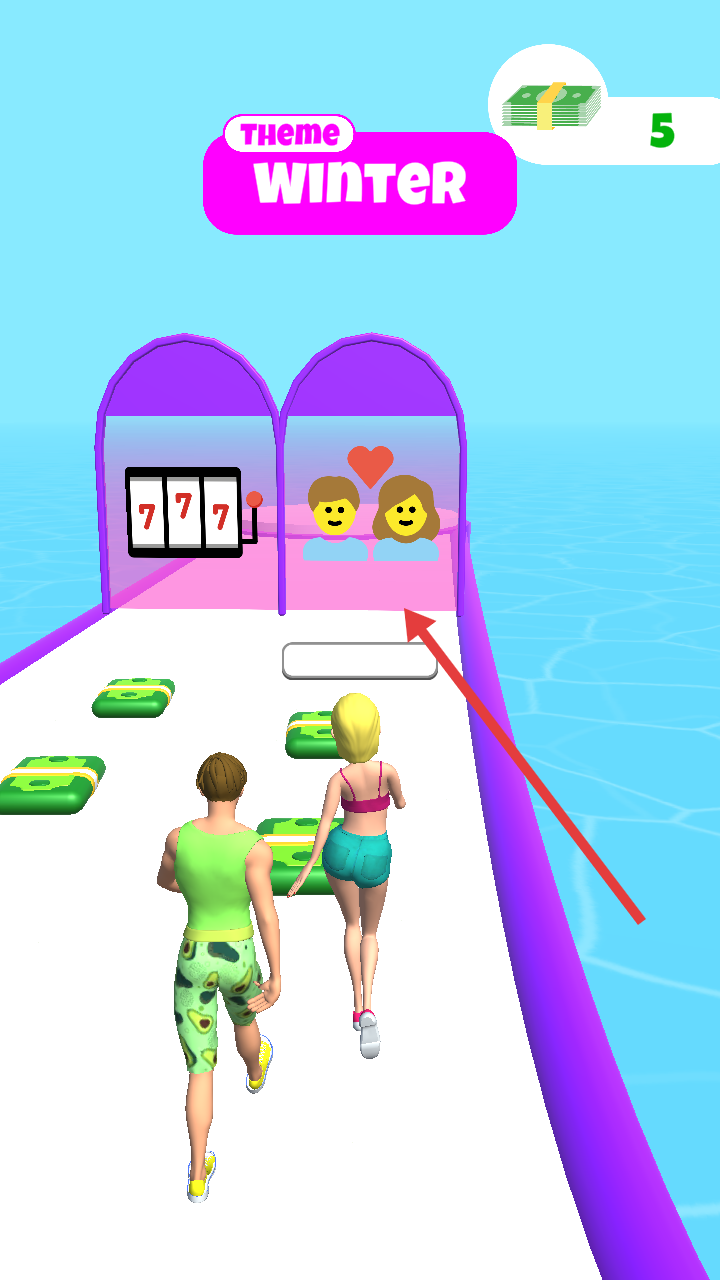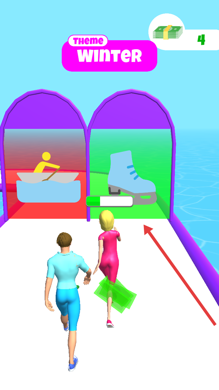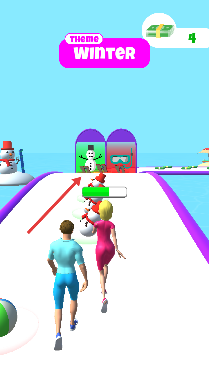 1、在Winter主题赛道,操控角色选滑冰鞋、雪人等冬季相关门,避开划船、潜水等无关门,开启主题挑战。