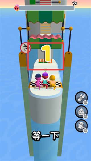 1、在起点看到数字【1】标识与“等一下”提示,停留等待障碍状态稳定,再启动角色开始闯关。