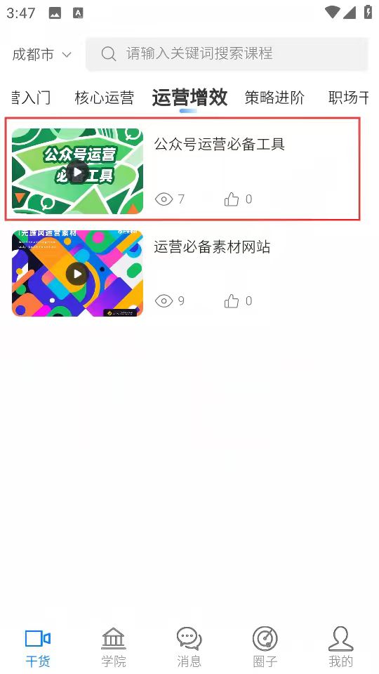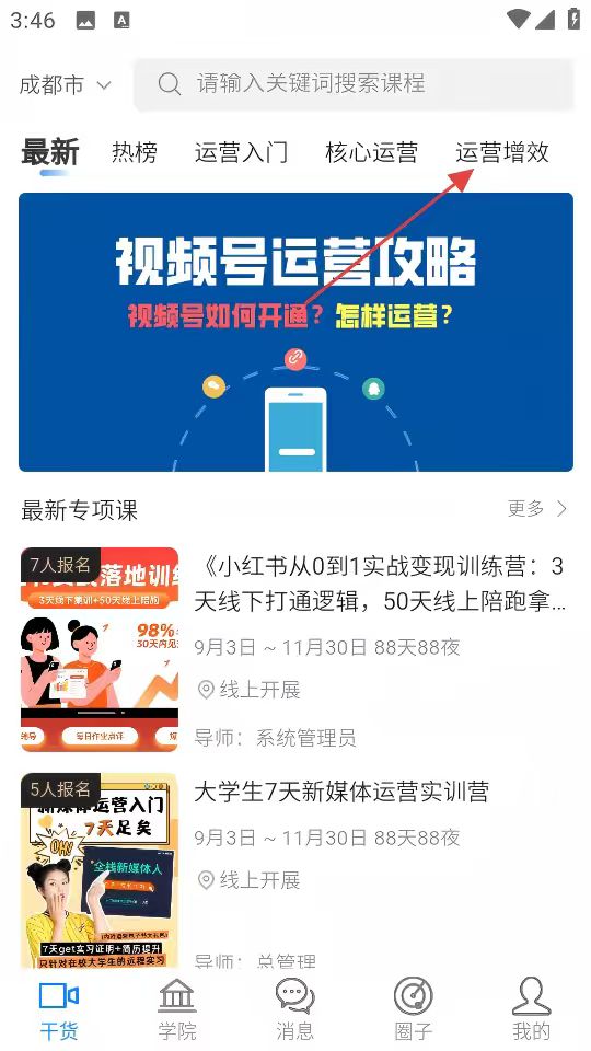 2、在课程页面点击【运营增效】标签,可查看该分类下的课程。