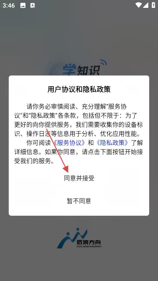 1、若同意【用户协议和隐私政策】,点击【同意并接受】按钮即可开始接受服务。