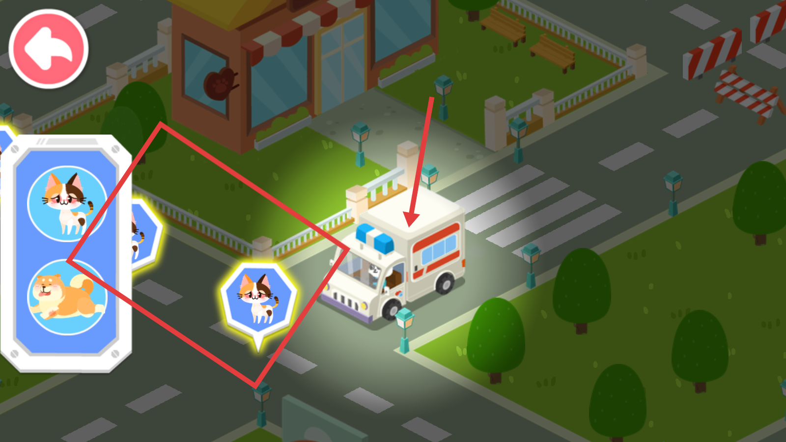 1、提供自由探索的救援场景,孩子可驾驶救援车跟随地图指示,寻找需要帮助的受伤小动物。