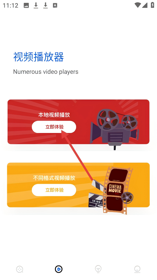 2、在视频播放器界面,点击【本地视频播放】下的【立即体验】按钮,进入本地视频播放功能。