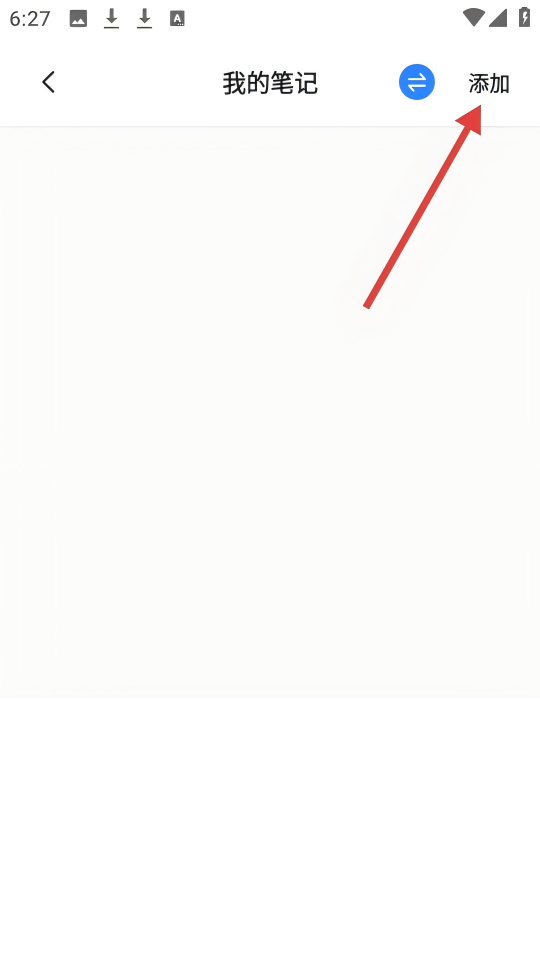 3、在【我的笔记】页面,点击右上角【添加】,可进入笔记编辑界面。