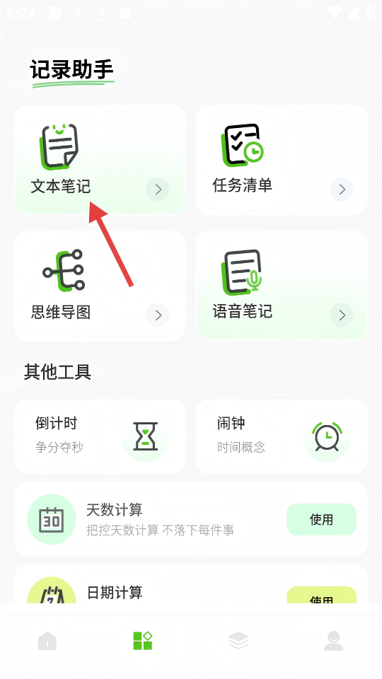 2、在【记录助手】页面,点击【文本笔记】,可进入文本笔记编辑界面。