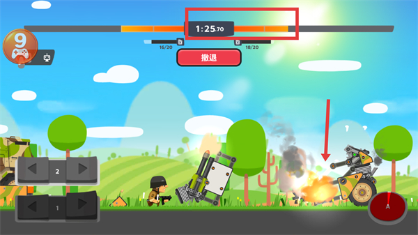3、注意红色框内的倒计时【1:25.70】,在时间限制内高效消灭敌方战车,推进战斗进度。