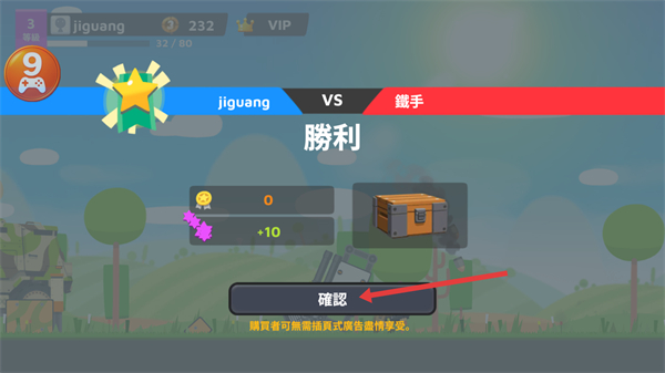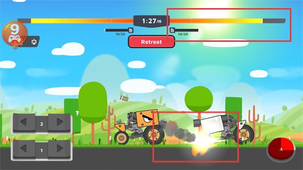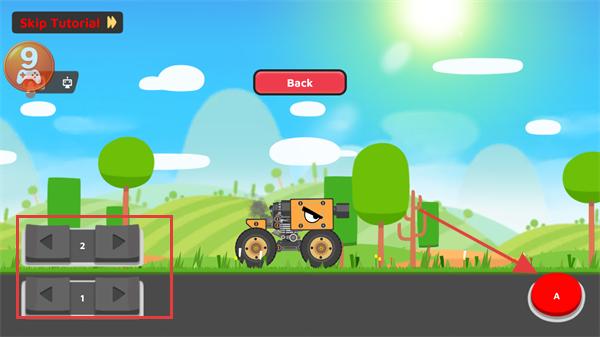 2、进入关卡界面,可点击【Skip-Tutorial】跳过教程,操控左右按键移动战车,准备进行对战。