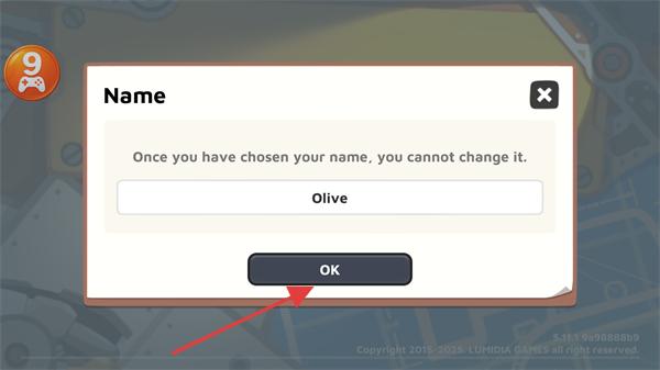 1、在【Name】弹窗中确认名称为【Olive】,点击【OK】按钮,提示名称选定后不可更改。