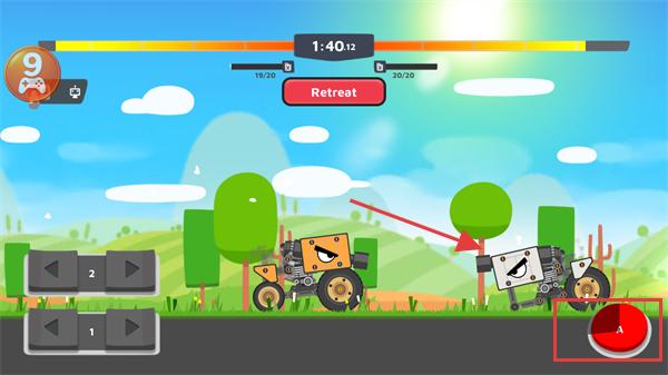 3、点击右侧【A】按钮发起攻击,瞄准敌方战车,当前进度条显示【1:40:12】,推进对战节奏。