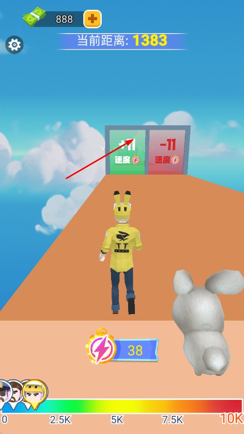 2、数字门抉择:途中遇到红蓝数字门要快速判断正负效果,选择增加速度或延长冲刺时间的数字门解锁增益。