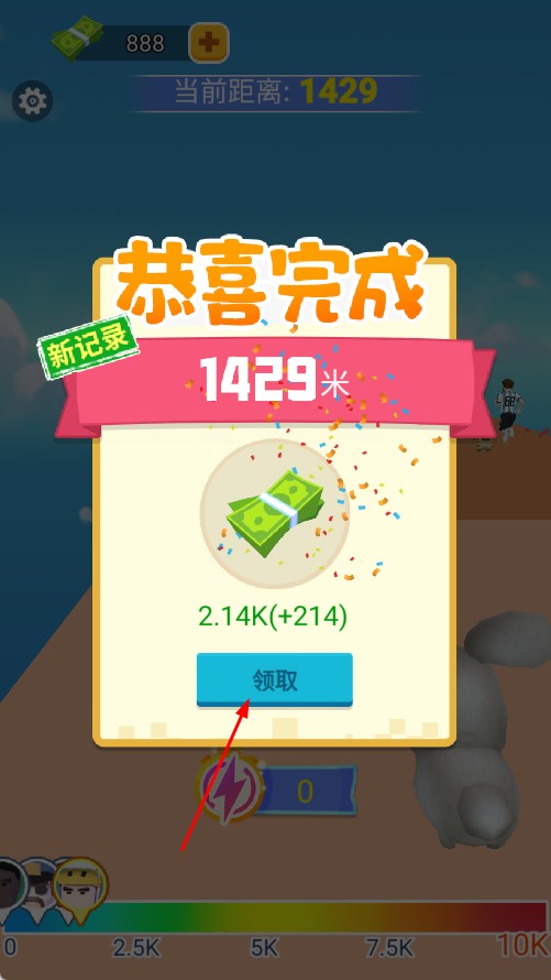 4、完成跑酷后,点击【领取】按钮,获取2.14K等奖励。