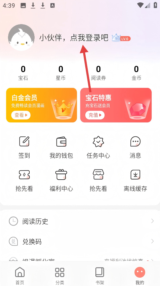2、在我的页面,点击【小伙伴,点我登录吧】可进入登录选择界面。
