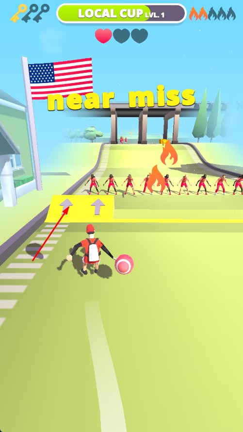 3、避开人群等障碍物,前方跳台准备上去,越过障碍。