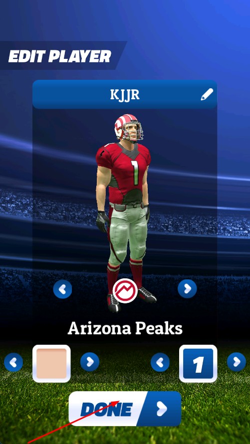 2、在球员编辑界面,可调整球员外观等,设置好后点击【DONE】。