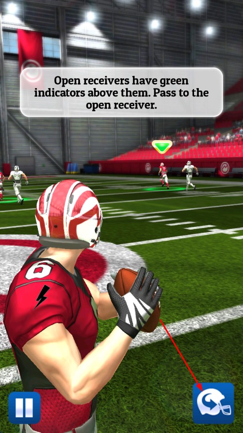 4、寻找头上有绿色标识的空位接球手,向其传球,完成进攻。