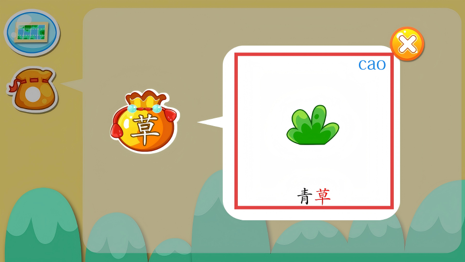 3、在汉字学习关卡页面,点击【草】字,进行该汉字的学习。